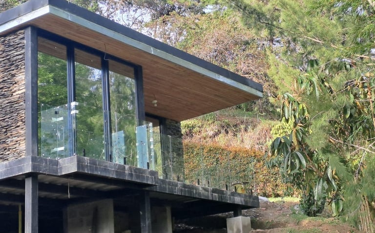 Pasamanos de vidrio que fusionan seguridad y estilo, perfectos para escaleras y balcones, añadiendo un toque moderno a su casa.